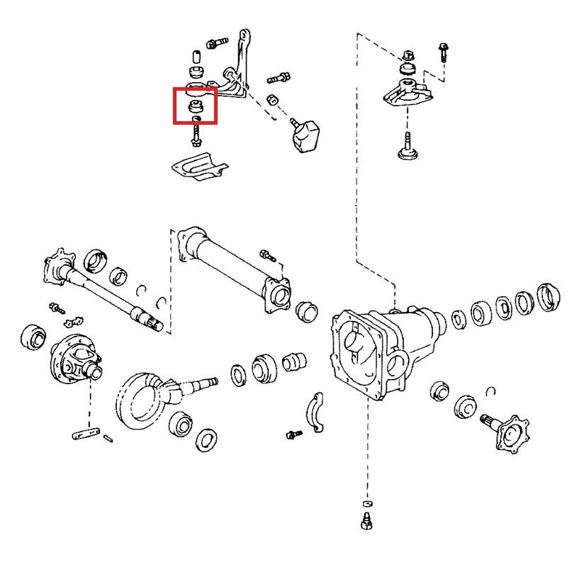 Etuperän/ tasauspyörästön kannakkeen pusla TAB-KR52DM Toyota Hiace 1995 – 2015. Alkuperäisiä varaosanumeroita: 41651-28010, 41651-28040,41651-28050.