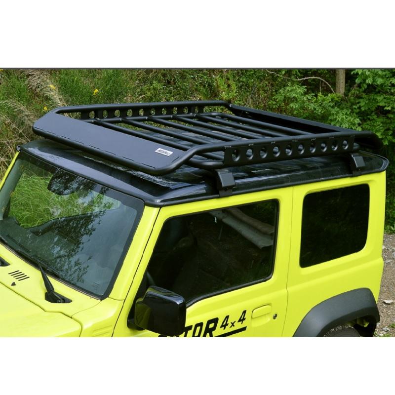 Alumiininen ”extra light” kattoteline Raptor 60573 Suzuki Jimny 2018 eteenpäin. Kiinnittyy neljällä jalalla suoraan autoon – asennus ei vaadi poraamista. Mustaksi pulverimaalttu.