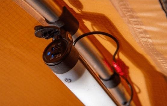 – Led valo 300 lumenia, 2 x USB pistoke sekä 1 x savukkeensytytinpistoke
