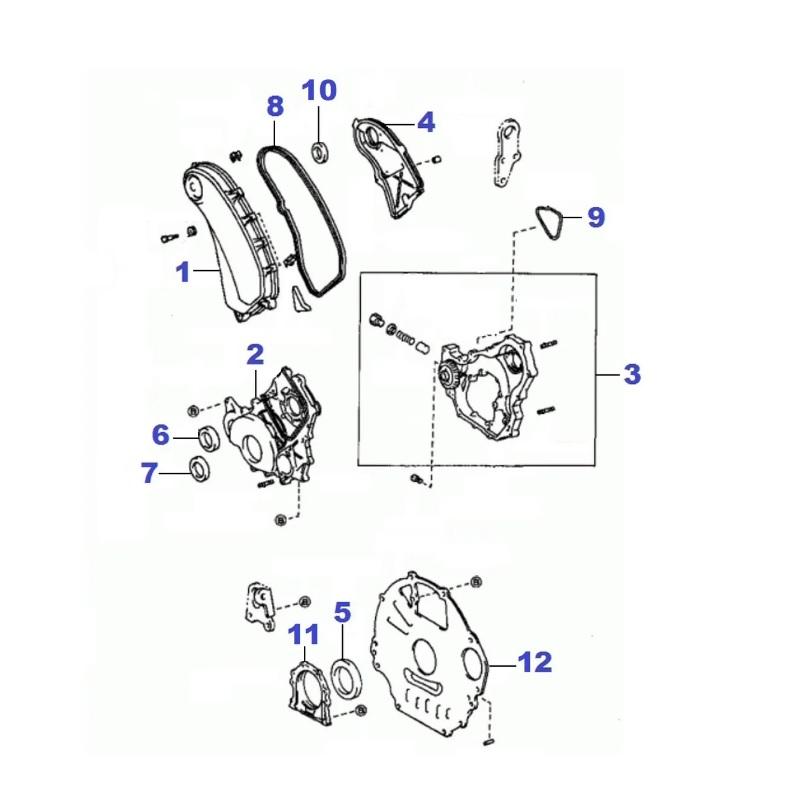 Moottorin täydellinen öljypumppu ajoituskotelolla Aisin MPH1027 Toyota Land Cruiser 70 / 80 sarja. Toyota osa nro. 11301-17021, 11301-17020.