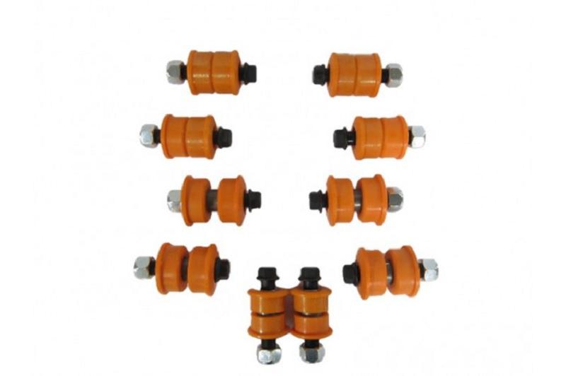 Täydellinen taka-akselin polyuretaanipuslasarja taakse Toyota Land Cruiser HDJ80 1999 asti. Sarja sisältää molempien ylä- ja alatukivarsien kaikki puslat sekä panhard- tangon molempien päiden puslat.