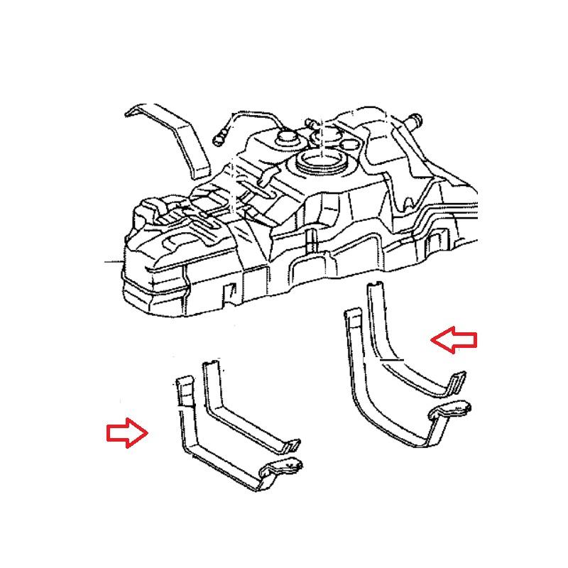 Tankin kiinnityspannat Toyota Land Cruiser 120. Vastaa alkuperäisiä osanumeroita 77601-35090, 77602-35030.